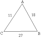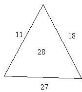 Colin and Anton noticed that the difference of two corner numbers is the same as the difference of the numbers on the two sides they do not have in common. (see Figure 38). They discovered this relationship inductively and later explained it deductively (See Chapter II, section 1). Once this relationship is known it establishes enough information to quickly find an answer. For example, in the original triangle, it tells us the difference of the secret numbers on the base is 18‑11 = 7 (Notice that the equation C – A = 9 which came up in the solution using system of equations expresses the same relationship for two other secret numbers). We know their sum is 27 and their difference is 7. Anton would usually find the numbers quickly by guess and check at this point, but on one occasion Colin suggested subtracting the difference from the sum to find twice one of the numbers, and then dividing by 2. They had a great deal of difficulty formulating this method, but had they succeeded it would have produced a formula like A = , which is similar to the “usual” formula, though it reveals its much different origins.