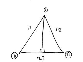 Many participants in the studies considered whether the triangle in the original Arithmagon puzzle might offer a clue to its solution. Wayne was unusual in that he took this clue seriously, even when told that the situation had nothing to do with triangles. Wayne explored the Arithmagon situation by drawing analogies between the situation, and his knowledge of triangle geometry (MAT episodes 1, 3, 5, 6, & 16). This made triangle properties like area, Pythagorean triples, and angle measure relevant to his exploring (see Figure 18).