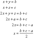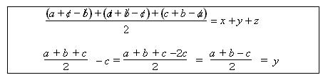 y + b = y + (x + z ) = 1/2(a+b+c)
