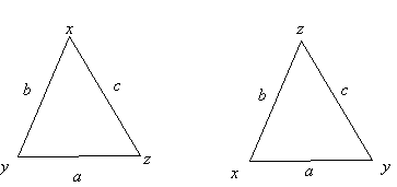 where a, b, and c are the values on the sides of the triangle, with a opposite the vertex x. Wayne gave a verbal rendition of this formula: